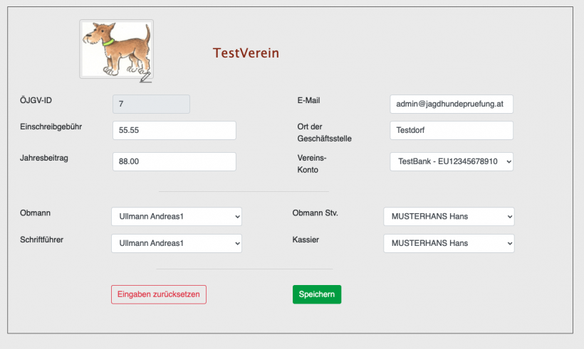 Hier werden alle Basisinformationen zum Verein hinterlegt.