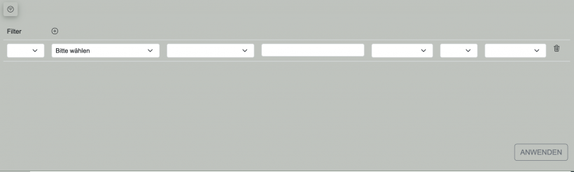 Das rechte Symbol (Kreis mit Linien) ermöglicht es, einen Filter zu setzen, um gewisse Daten zu selektieren, siehe Bild unten; Dabei werden die gewünschten Daten angezeigt, durch Klicken auf den Mistkübel, kann der Filter gelöscht werden, durch Klicken auf das Kreissymbol in der linken Ecke, gelangen sie zur Datenabfrage in das Menü zurück.