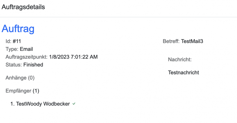 Auftragszeitpunkt: Gibt den Zeitpunkt an, wann die Email gesendet wurde.