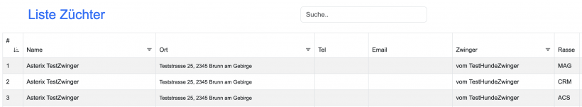 Rechts oben, können sie in dem Feld "Suche" nach dem gewünschten Züchter durch eingabe des Namens suchen.